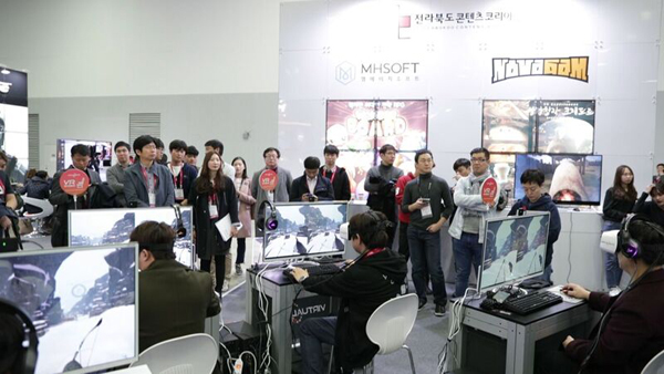 테크노블러드코리아는 지난 16~19일 부산 벡스코에서 열린 지스타 2017 B2B관에 VR e스포츠 경기장을 꾸리고, ‘버추얼게이트’에서 서비스 중인 14종 게임을 활용해 ‘버추얼게이트 배 VR e스포츠대회’를 열었다.