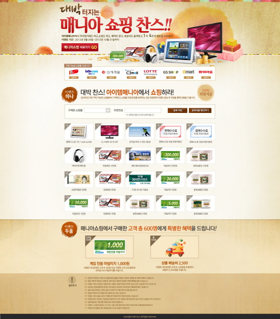 매니아 쇼핑의 쇼핑 정보 및 이벤트 내용은 홈페이지(http://shopping.itemmania.com)에서 확인 할 수 있다.
