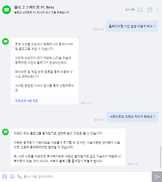 네이버(대표이사 사장 한성숙)는 블로그와 관련된 이용자들의 궁금증을 인공지능(AI)챗봇인‘스마트봇’을 통해 해소할 수 있도록‘스마트봇 고객응대’서비스(링크)를 시작했다.
