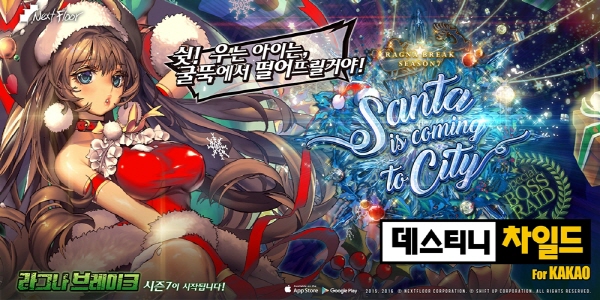 넥스트플로어(대표 황은선)는 20일 시프트업(대표 김형태)과 공동으로 개발하고 서비스하는 ‘데스티니 차일드 for kakao(이하 데스티니 차일드)’에 신규 레이드 콘텐츠 ‘산타 이즈 커밍 투 시티(Santa is coming to city)’ 업데이트를 진행한다.