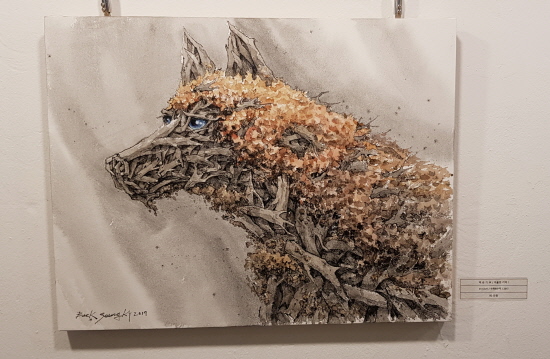 재미있는 것은 “작가들의 색깔이 그대로 드러난 그림이 그려졌다”는 것. 가령 정물과 유화 위주의 이인숙 작가의 경우 금속성 붓 터치의 ‘미소짓는 강쥐2’를 선보였다. 백승기 작가는 ‘겨울의 기억’을 통해 공해로 인해 점점 나무로 변해가는 개의 모습을 형상화했다.