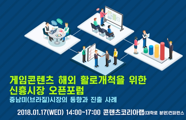 해외 활로개척 실제 사례를 통해 현지 진출 전략을 모색하고 현지 게임시장의 최신 동향과 전망을 공유하는 제4회 신흥시장 오픈포럼이 ‘중남미 및 브라질게임시장의 진출 전략과 노하우’를 주제로 오는 17일 14시에 콘텐츠코리아랩 대학로분원에서 개최된다.