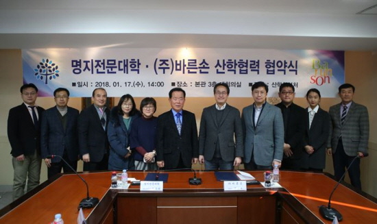 명지전문대학은 지난 17일 문화 콘텐츠 전문기업 ㈜바른손과 산학협력협약을 체결했다.