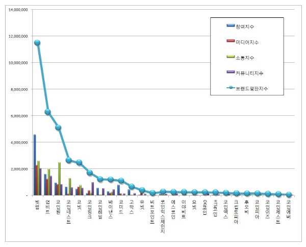 국내외 암호화폐 거래소 25곳을 대상으로 진행된 이번 조사에서 빗썸은 ▲참여지수 ▲미디어지수 ▲소통지수 ▲커뮤니티지수 등 4가지 항목 모두에서 1위를 기록했다. 4개 지수의 총합으로 산출되는 브랜드 평판지수는 2위 거래소보다 520만 포인트 가량 높은 1150만834포인트를 기록했다. 2배 가까운 스코어로 후발 주자를 누른 것이다.