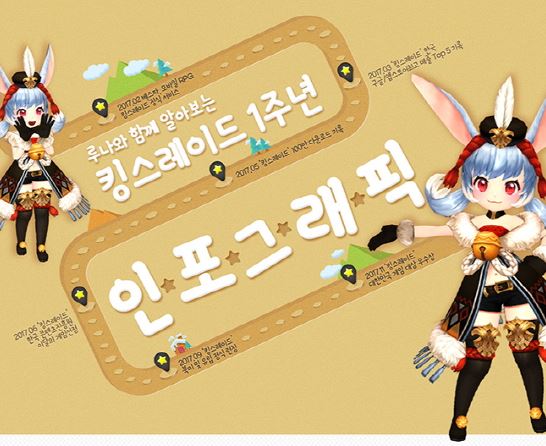 모바일 게임사 베스파(대표 김진수)의 모바일 RPG ‘킹스레이드(King's Raid)’가 출시 1주년을 기념해 특별 제작된 인포그래픽을 공개했다.