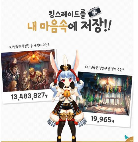 지난해 2월 16일 정식서비스를 시작한 '킹스레이드'는 그 동안의 발자취를 깜찍한 반묘 캐릭터 '루나'의 소개로 보다 알기 쉽게 표현했다.