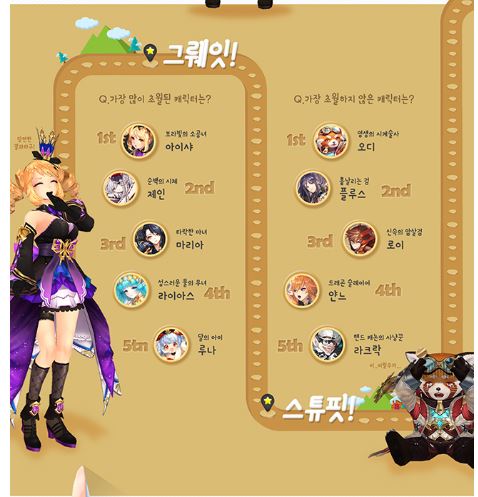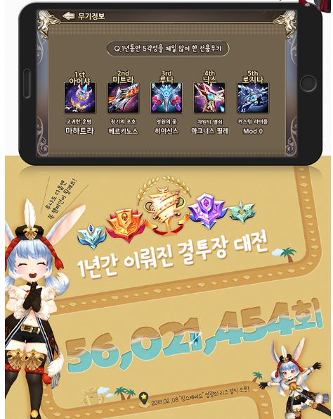 반면 5초월까지 진행하지 않은 불운의 캐릭터로는 오디와 플루스, 로이, 얀느, 라크락으로 조사됐으며, 챕터 클리어로 획득된 골드는 무려 1조 1805억 2417만 골드, 1년간 이뤄진 PvP 결투장 전투는 5602만 1454회로 기록됐다.