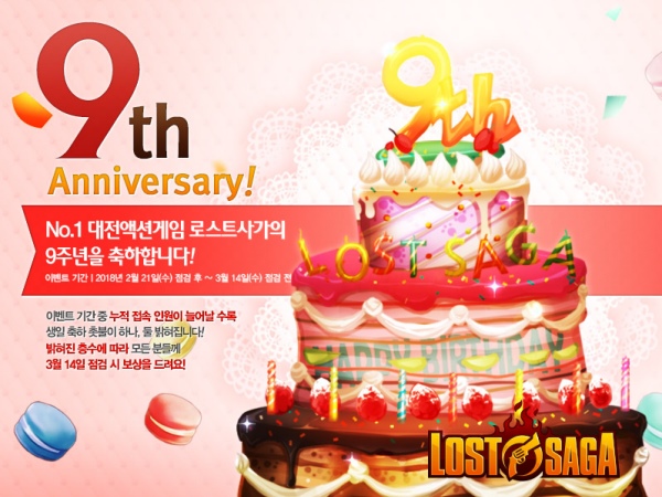또 모든 이용자를 대상으로 2017년 1월 1일부터 2018년 2월 1일까지의 누적 접속일 수에 따라 ‘유니크 장비보급’을 비롯한 ‘9주년 기념 메달(ALL +10)’을 증정한다.
