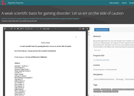 이 같은 내용을 담은 전문가 논문(‘A Weak Scientific Basis for Gaming Disorder: Let us err on the side of caution’, https://psyarxiv.com/kc7r9)이 행동 중독 논문(Journal of Behavioral Addictions)에 게재될 예정이다.