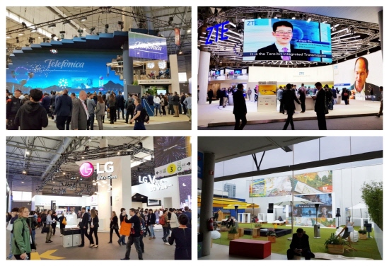 행사장에는 한국, 중국, 일본, 유럽 등의 기업들이 크게 자리를 잡고 5G를 소개하는 것을 보았다. 한국의 삼성, LG, SK, KT 등의 대기업이 새로운 스마트폰을 소개하기도 했고, 통신을 활용한 자동차도 전시했다. 특히 삼성은 갤럭시 S9을 소개하여 많은 사람들의 관심을 받기도 했다.