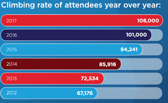 지난 2월 말에 있었던 스페인 바르셀로나 MWC 2018에는 205개국에서 온 10만 7000명이 방문을 했다. 3500명의 언론 및 관련 분야 관계자들과 7700명의 기업 대표들이 참석을 했다고 한다. 참석자의 55%가 시니어급이며, 2400개가 넘는 부스들이 12만 제곱미터의 행사장을 가득 채웠다고하니 그 규모가 얼마나 대단한지 다시 한 번 느낄 수 있다.