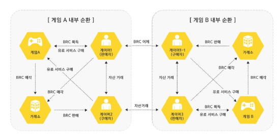 기존 게임의 BM(수익모델)은 게임을 오래 하면 생기는 ‘머니’가 있고, ‘캐시아이템’ 머니가 있다. 거기에 BRC 하나가 더 생기는 거다. 원래 BM으로 삼았던 수익모델은 그대로 가져가고, 플러스해서 BRC가 생기는 것이다. 또한 다른 회사와 교류할 수 있는 기회가 생겨 ‘1석 3조’인 셈이다.