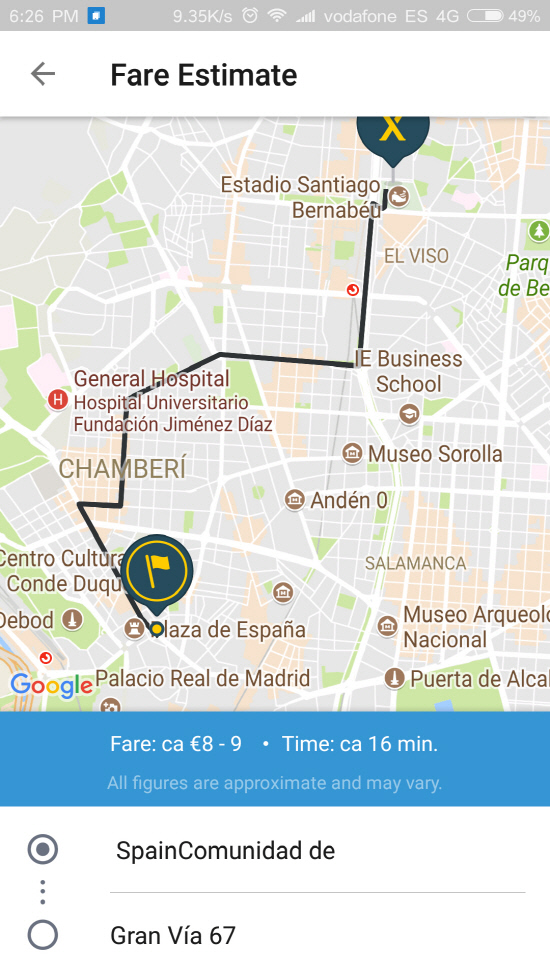 가까운 곳을 가면 아쉬워하는 이유가 택시 이동이 완료된 후에 택시 기사가 마이택시에 0.99유로(약 1300원)의 수수료를 내게 되어 있기 때문이다. 단거리를 가게 되면 부담이 될 수도 있는 금액이다.