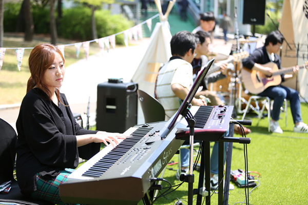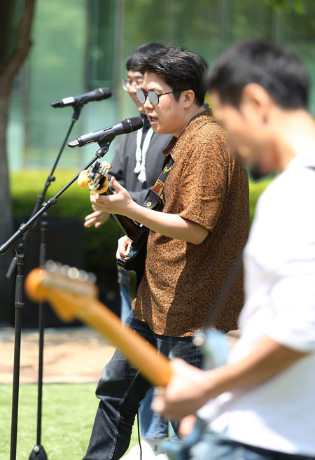 25일 넥슨 판교사옥 앞 야외 특설무대에는 넥슨 밴드가 음악 공연으로 NDC를 찾은 관람객들의 눈길을 사로잡았다.