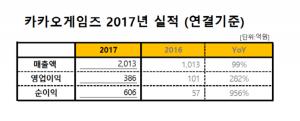 2018년부터는 지난해 11월 통합한 카카오의 게임 사업 부문의 매출이 온전히 포함되기 때문에 올 연간 매출은 대폭 확대될 것으로 예상된다.