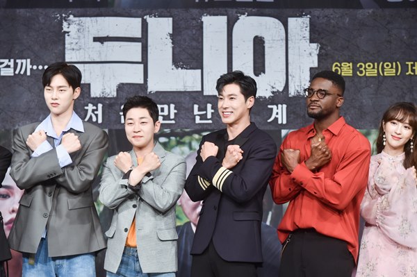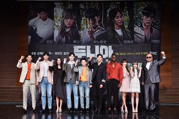 오는 6월 3일 일요일 저녁 6시 45분 첫 방송되는 MBC 새 예능 ‘두니아’는 ‘야생의 땅: 듀랑고’를 소재로 하며, 가상의 세계 ‘두니아’에 떨어진 10인의 출연자들이 만들어가는 드라마틱한 이야기를 담고 있다. 이날 제작발표회 현장에서는 박진경PD, 이재석PD와 출연진 10명(유노윤호, 정혜성, 루다, 권현빈, 샘오취리, 돈스파이크, 구자성, 한슬, 오스틴강, 딘딘)이 참석한 가운데 트레일러 영상이 최초 공개되고, 다양한 질의 응답 시간이 이어졌다.