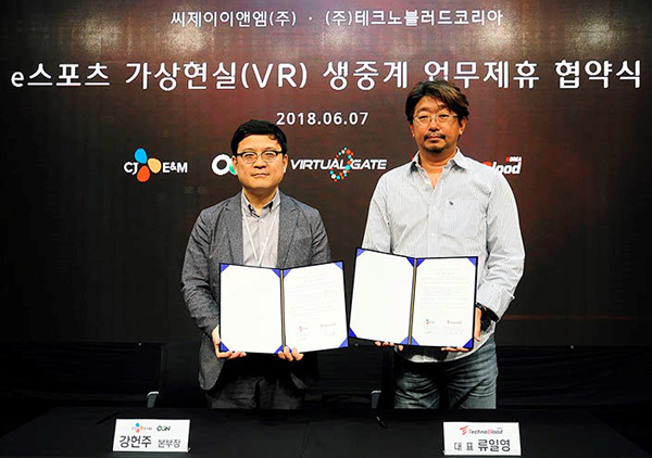 CJ E&M 게임채널 OGN(총괄본부장 강헌주)과 VR 전문업체 테크노블러드코리아(대표 류일영)는 세계 최초 e스포츠 VR 생중계를 위한 MOU를 체결했다고 18일 밝혔다.