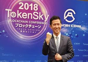 아시아 최대의 블록체인 컨퍼런스 ‘2018 토큰스카이 도쿄’서 카츠노리 콘도 아소비모 대표이사가 ‘아소비코인’ 리버스 ICO에 대한 소개와 함께 프리세일을 4일 깜짝 공표했다.