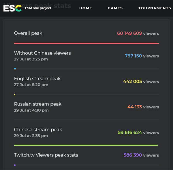 e스포츠 데이터 분석회사인 ESC에 따르면, PGI 2018 대회 최고시청자 수는 약 6015만 명이었다. 이는 중국 시청자들을 포함한 수치다. 특히 FPP 모드 2일차 경기에서는 중국에서만 5961만 명이 시청했다. 이날은 전날 무시무시한 ‘여포 모드’를 펼쳤던 중국 팀 OMG가 사실상 우승을 확정짓던 시점이다. 아직 펍지주식회사가 공식적인 수치를 발표하지는 않았지만, ‘배틀그라운드’ 경기가 중국에서 어느 정도 인기인지 알 수 있는 대목이다(펍지 측은 현재 공식적인 시청자 수를 취합하고 있으며, 취합이 완료되면 이를 발표할 계획이다).