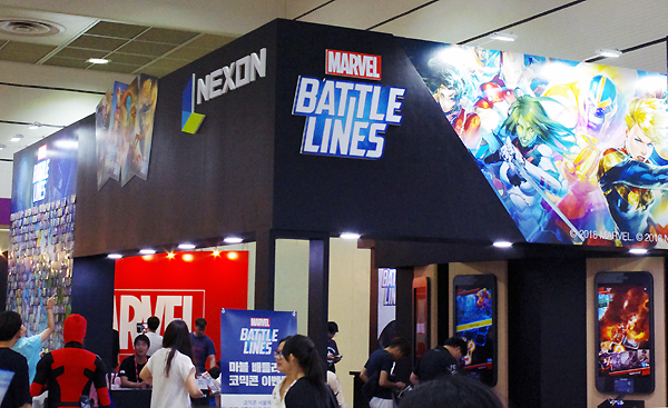 넥슨이 세계적으로 유명한 마블 IP(지식재산권)를 활용, 새로운 TCG(카드배틀) ‘마블 배틀라인’을 선보인다. 넥슨 데브캣스튜디오는 3일 열린 국내 최대의 팝 컬처 행사인 코믹콘 서울 2018에서 ‘마블 배틀라인’의 부스를 마련하고 이를 일반 관객들에게 선보였다.