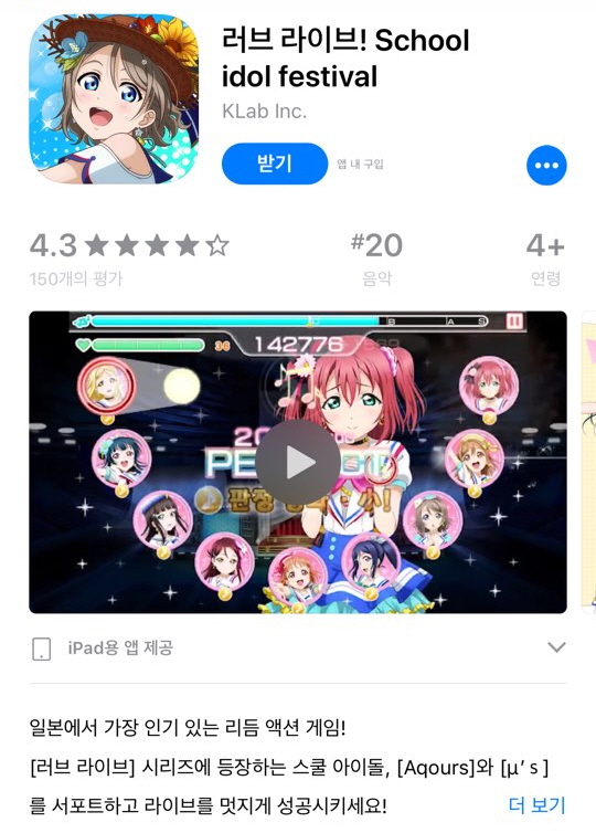 일본 앱스토어 3위 안에 드는 앱 Lovelive 개발