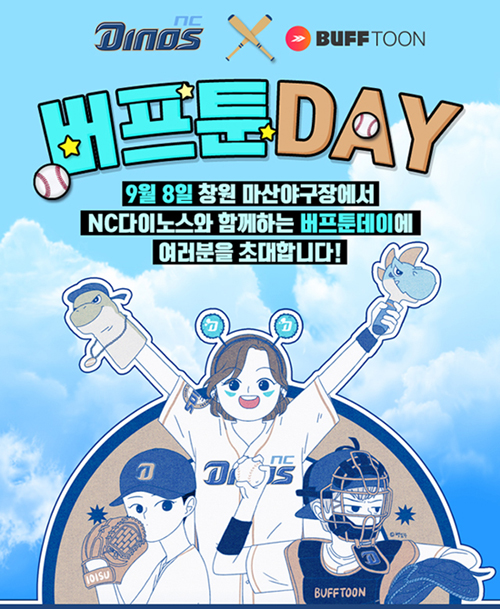 엔씨소프트(대표 김택진)의 ‘버프툰(BUFFTOON)’이 NC 다이노스와 함께 ‘버프툰 데이’ 행사를 진행한다고 24일 밝혔다.