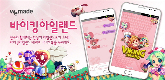 이번에 위메이드가 선보인 카카오톡 테마는 '바이킹 아일랜드', '카디'(카오스&디펜스), '리듬스캔들' 3종으로, 각 게임별 주인공 캐릭터를 앞세운 귀여운 모습이 기성 ‘카카오톡 테마’와는 차별화된 매력을 줄 것으로 기대된다.