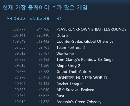 스팀 게임 통계에 따르면, 22일 오후 1시 44분 기준 ‘메이플스토리2’의 현재 플레이어 수는 2만9013명, 하루 최고 동시접속자 수는 4만1320명을 기록 중이다. 1위는 펍지의 ‘배틀그라운드’, 2위는 ‘도타2’, 3위는 ‘카운터스트라이크: 글로벌 오펜시브’가 유지하고 있다.