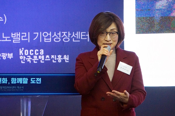 은수미 성남시장이 31일 판교제2테크노밸리 LH기업성장센터에서 열린 新글로벌게임허브센터 개소식에서 게임산업 진흥을 위해 적극적으로 지원하겠다고 약속했다.