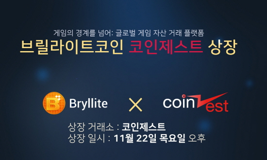 브릴라이트(Bryllite Ltd. 대표 김유라)는 오는 22일 국내 암호화폐 거래소인 '코인제스트'에 BRC를 상장한다고 밝혔다. 입금 지갑은 21일 오후 중으로 개설될 예정이며 22일 오후부터 거래(매수 및 매도) 가능하다.