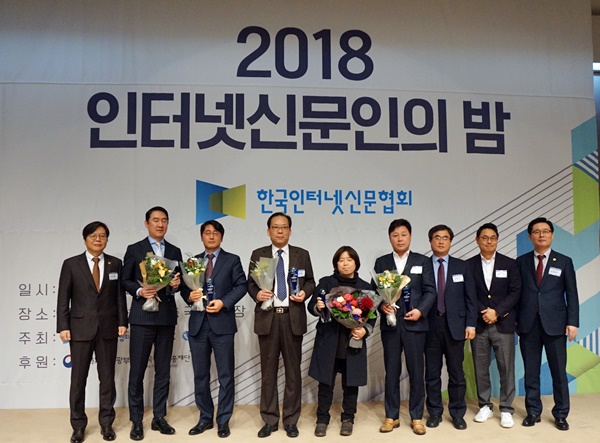 한국인터넷신문협회(회장 이근영, 이하 인신협)는 12일 서울 한국프레스센터에서 ‘2018 인터넷신문인의 밤’을 열고, 올 한해 두드러진 활동을 한 인물과 인터넷신문 발전을 위해 기여한 유공자를 대상으로 인물상 및 공로상 수상식을 진행했다.