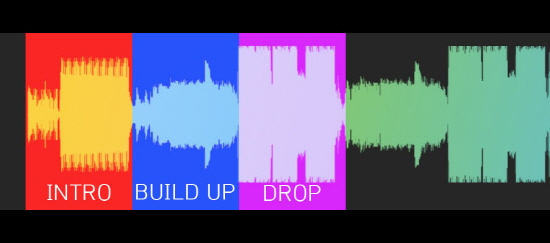 그 비밀은 EDM이 갖춘 수학적인 곡 구성에 있다. 거의 대부분의 EDM은 아래 그림과 같은 곡구성을 갖추고 있다.