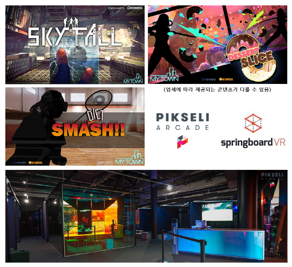 스프링보드VR은 미국과 캐나다 등 500여개 북미 VR 카페 매장을 대상으로 VR콘텐츠 유통 및 현장 운영 관리를 담당하는 VR전문 관리 업체이며, 픽셀리는 핀란드 최초의 VR카페이자 북유럽 최대 규모를 자랑하는 VR카페 체인 브랜드이다.