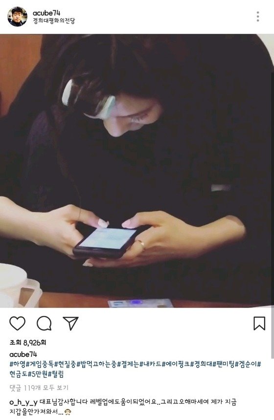 그러나 하영은 얼마 후 모바일게임에 현질을 하는 모습을 들켜 웃음을 자아냈다. 소속사 대표가 자신의 SNS에 “내 카드로 하영이 5만원 결제했다”고 이른 것. 이에 하영은 “레벨업에 도움이 됐다”며 “지갑을 안가져와서 그랬다”고 댓글로 응수했다.