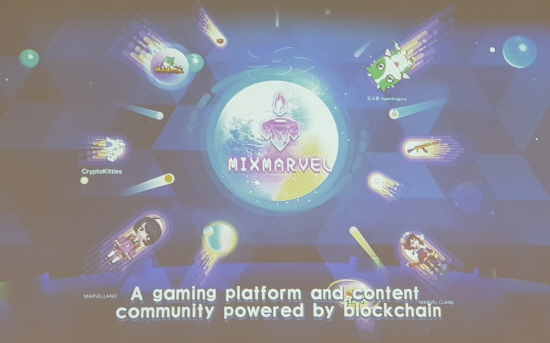 ▲뒤이어 글로벌 블록체인 게임 개발사인 MixMarvel(믹스마블)의 Yiyi 파트너가 ‘믹스마블 플랫폼’에 대해 발표하며 ‘하이퍼드래곤스’ 같은 블록체인게임 개발 및 인터넷 라이브 스트리밍을 계획하는 등 방대한 로드맵을 발표했다.