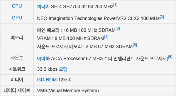 세가 연합군의 주력 중 하나였던 야마하와 공동 개발한 GD-ROM은 기존에 사용하던 CD-ROM의 생산 라인을 그대로 사용할 수 있었기에 제조공정에 필요한 제작비가 적게 든다는 엄청난 장점이 있었다. 엄청난 장점이 저렴한 비용이었다면 반대로 엄청난 단점은 1.2GB 밖에 안 되는 저장용량이었다. 기껏 CD-ROM의 2배정도의 용량인데 사실 2CD 게임이나 4CD 게임이나 CD 한 두 장 더 늘어나는 정도이기에 멀티미디어 시대에 적합한 수치로는 다소 부족한 편이었다.