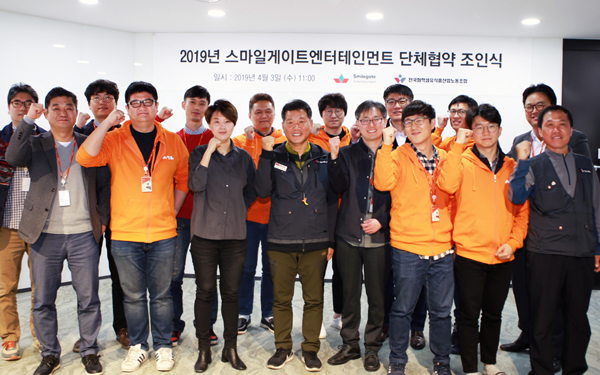 스마일게이트는 스마일게이트노조 ‘SG길드’(이하 노조)와 3일 오전 11시 성남시 판교 스마일게이트 캠퍼스 사옥에서 단체협약 조인식을 진행했다고 밝혔다.