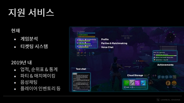 ‘에픽 온라인 서비스’는 어떤 엔진을 사용하든, 어떤 스토어에 게임을 출시하든 상관없이 개발자라면 누구나 무료로 사용할 수 있는 무료 크로스 플랫폼 서비스로, 빠른 게임 개발과 원활한 게임 운영, 검증된 인프라의 신뢰성 등을 개발자에게 제공한다. 현재 게임분석과 티켓팅 시스템이 제공 중이며, 올해 안으로 업적, 순위표 & 통계, 파티 & 매치메이킹, 음성채팅, 플레이어 인벤토리 등의 기능이 제공될 예정이다.