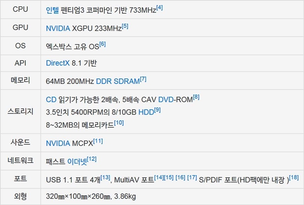 2000년 3월 GDC에서 공식 발표를 통해 가정용 콘솔 게임기 시장 진출을 선포한 마이크로소프트에게 당시 발표를 지켜보던 사람들은 기대 반 우려 반 속에 많은 관심을 가졌다. 2001년 5월 시연을 통해 세상에 첫 선을 보인 XBOX는 동시대의 절대왕좌를 차지하고 있었던 플레이스테이션 2에 비해 성능적으로는 압도적인 우위를 보여주었다. 주요 부품도 일제 보다는 국적이 미국인 회사들이 모였다.