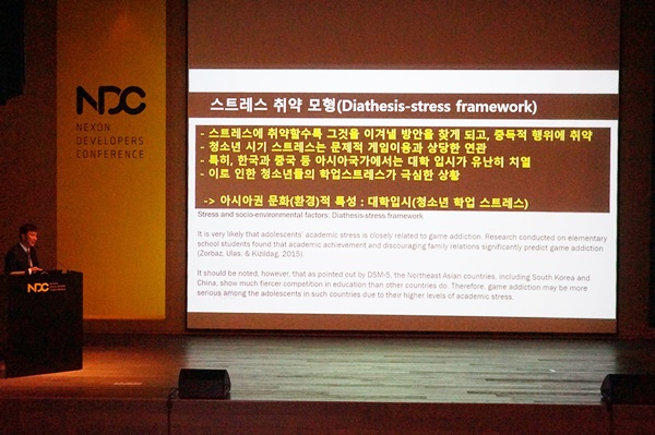 정의준 건국대학교 문화콘텐츠학과 교수가 25일 경기도 판교에서 열린 넥슨개발자컨퍼런스(NDC)에서 한국의 청소년 2000명을 대상으로 실시한 4년간의 추적조사 결과를 발표했다.
