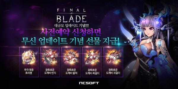 엔씨소프트(대표 김택진, 이하 엔씨(NC))가 서비스하고, 스카이피플(대표 박경재)이 개발한 모바일RPG(Role Playing Game, 역할수행게임) ‘파이널 블레이드’가 18일부터 7월 7일까지 6월 대규모 업데이트 사전 예약을 진행한다.