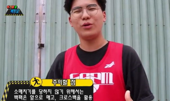 “길거리 오토바이 날치기 예방, 백팩 앞으로 매라.”