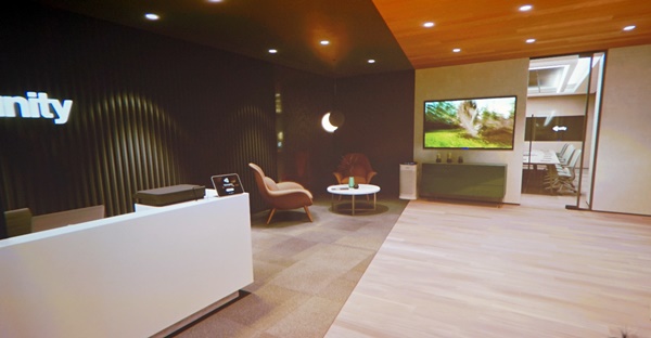 이어 HDRP(고해상도 렌더 파이프라인)으로 실시간 렌더링된 유니티 코리아 신규 오피스 비주얼이 공개됐다. HDRP는 강력한 고사양 그래픽 렌더링 기능으로, 실제와 가까운 고품질 비주얼 제작을 가능하도록 해준다. 유니티 코리아는 신규 오피스 비주얼의 벽화나 바닥 재질을 실시간으로 교체하거나 시간대의 변화에 따라 광량이 변하는 모습을 시연하면서 “실제 모습과 매우 비슷하다”고 강조했다.