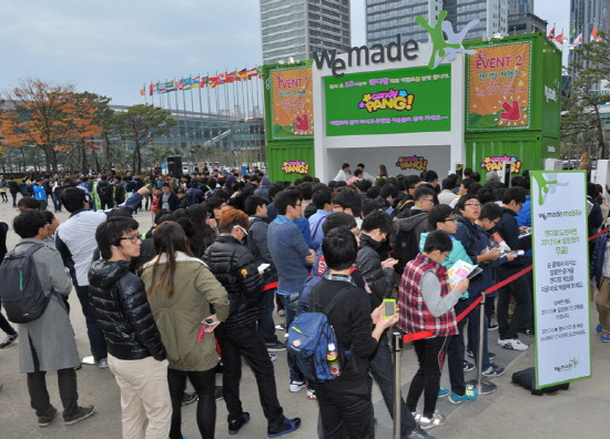 위메이드는 ‘캔디팡’ 야외 부스를 마련해 풍성한 이벤트를 진행했다. 특히 부스에서 흘러 나오는 '캔디 송'은 흥겨운 리듬과 멜로디로 부스를 찾은 이들의 어깨를 들썩이게 하고 있다.
