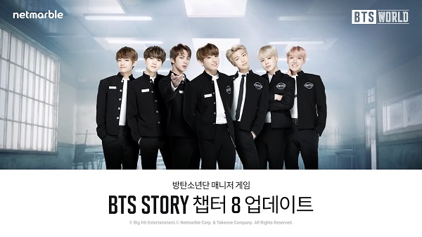 넷마블(대표 권영식)은 방탄소년단 매니저 게임 ‘BTS월드(BTS WORLD, 개발사 테이크원컴퍼니)’에 새로운 BTS 스토리와 멤버 카드, 게임 콘텐츠 및 미션 룰을 추가하는 업데이트를 19일 실시했다고 밝혔다.