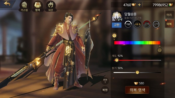 이용자들은 ‘검협’에서 개인의 취향에 맞춰 의복·머리·망토·등·허리·얼굴·검형 등 총 7가지의 부위를 커스터마이징 할 수 있다. 염색 시스템을 통해 자신이 보유한 의복과 머리 부위별 채도 및 밝기까지 설정해 자신의 개성을 나타낼 수 있고 얼굴은 머리·스티커·얼굴형·눈썹·눈·코·입 등 총 7가지 부위에 대한 세밀한 조정이 가능하다.