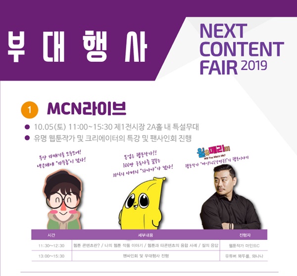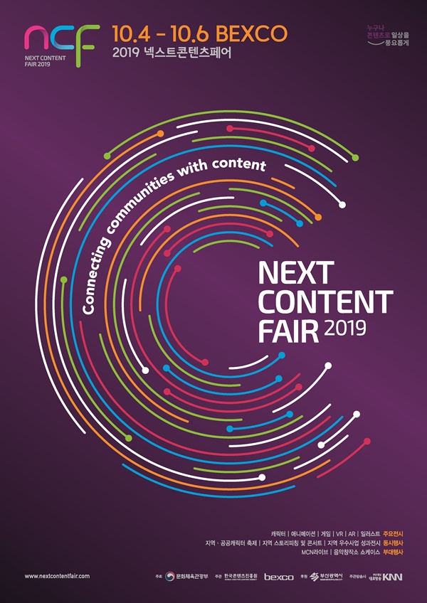 문화체육관광부(장관 박양우)가 주최하고 한국콘텐츠진흥원(원장 김영준)가 주관하며 부산광역시가 후원하는 대한민국 대표 콘텐츠 행사 ‘2019 넥스트콘텐츠페어(Next Content Fair 2019)’가 10월 4일부터 6일까지 부산 벡스코에서 열린다.