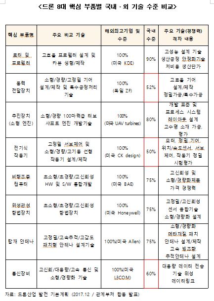 국산 드론 핵심 부품의 기술력 부족이, 글로벌 시장 경쟁력 열위로 이어지고 있어. 경쟁력 강화가 시급하다.