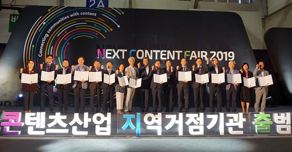 문화체육관광부(장관 박양우)은 4일 부산 벡스코에서 열린 ‘2019 넥스트콘텐츠페어’ 특설무대에서 콘텐츠산업 지역거점기관 출범식을 개최했다.