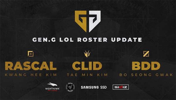 젠지 이스포츠(Gen.G Esports)의 ‘리그 오브 레전드(LoL)’ 팀이 ‘라스칼’ 김광희, ‘클리드’ 김태민, ‘비디디’ 곽보성 선수를 영입했다고 21일 발표했다.